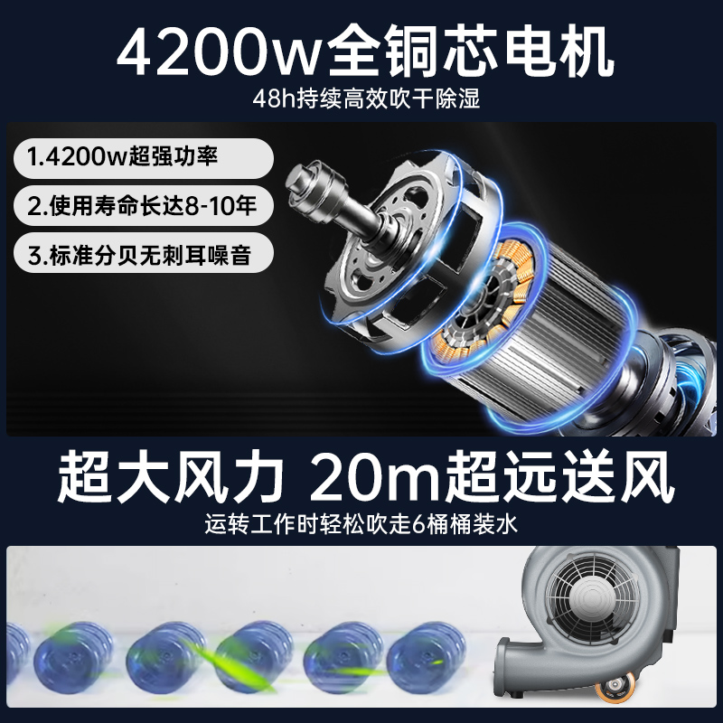 揚子YZ-CGJ001地面吹干機4200W冷熱雙風(fēng)吹干效果高于自然風(fēng)機,有限降低使用時間,6擋可調(diào)節(jié)橫掃潮濕通風(fēng)排氣。