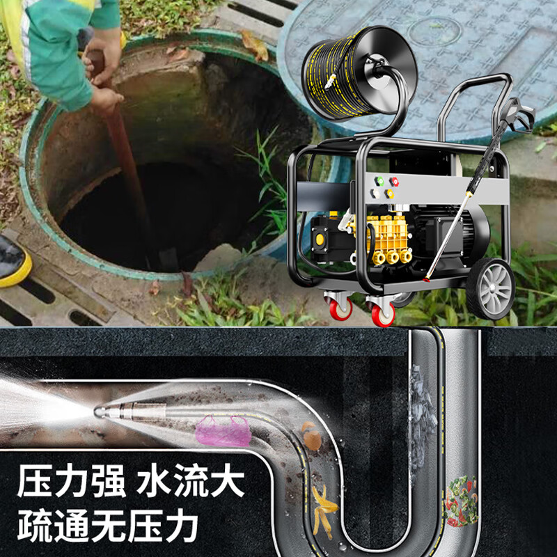 自吸/水龍頭清洗更方便,30-100米定制防爆鋼絲管,專門針對(duì)各種口徑大小得管道,可疏通50-800mm管徑