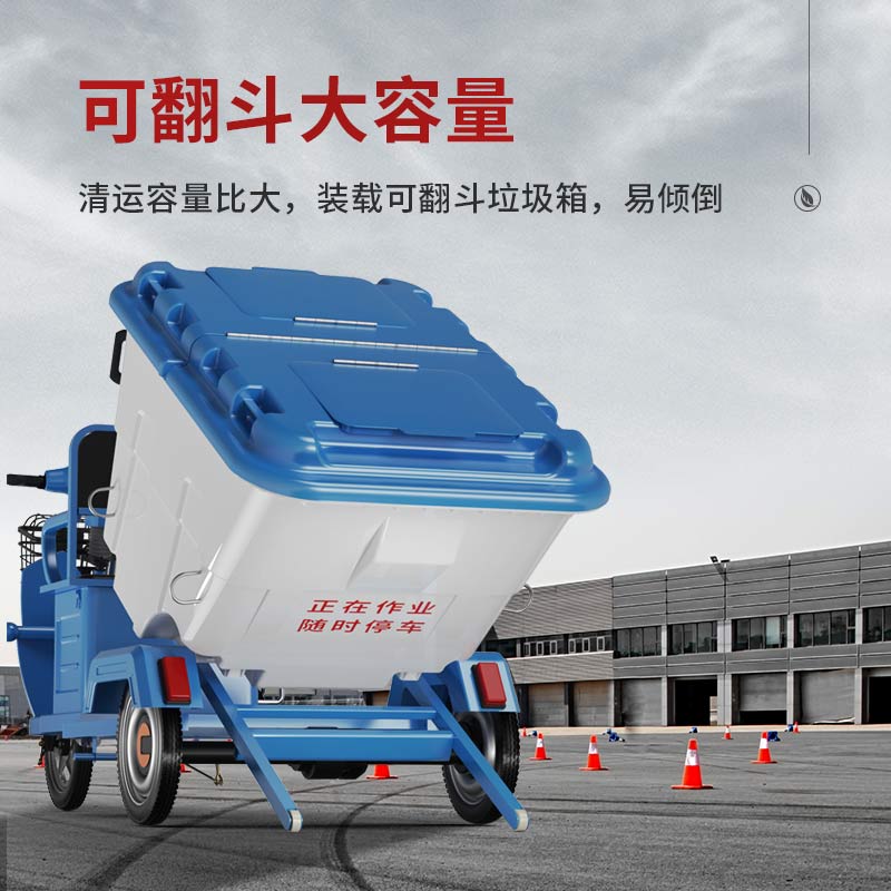 揚子環(huán)衛(wèi)搬運車安全環(huán)保,可翻斗大容量垃圾箱裝得更多傾倒更輕松,高亮大燈聚光強低能耗,夜間行駛也安心。